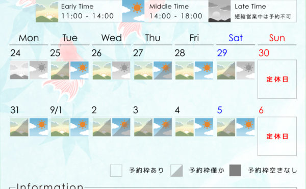 2020年8月10日ブログ洋子野口 夏期休業のお知らせFerice Information 夏期営業のお知らせ 日頃よりフェリス をご愛顧いただき誠にありがとうございます。13日〜17日までサロンがお休みとなります。そのほかの営業は↑のカレンダー画像をご覧ください。 コロナ […]